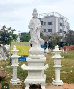 Tượng Phật Quan Âm bằng đá Non Nước là biểu tượng của lòng từ bi và trí tuệ trong Phật giáo, được chế tác tinh xảo từ loại đá quý tự nhiên nổi tiếng tại làng đá Non Nước, Đà Nẵng.