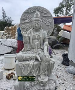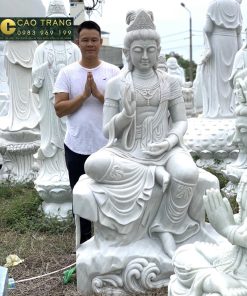 Tượng Quan Âm Tự Tại đá cẩm thạch ngồi