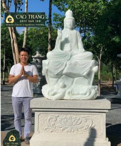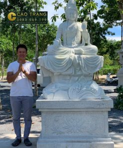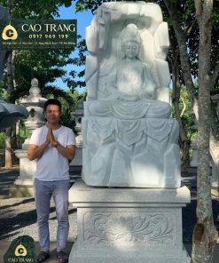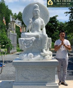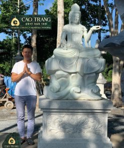 Tượng Quan Âm Tự Tại bằng đá ngồi trên đài